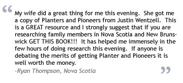 Planters and Pioneers is a unique work with virtually no others existing like it. It has application to family history research not only in Atlantic Canada and New England, but across all of North America and beyond because so many people descended from those early Nova Scotia / New Brunswick settlers. It is a great reference tool for researchers who have an interest in the region, or if they only have interest in a few families from the region. It is also a great starting place for many new researchers who have roots in Atlantic Canada.